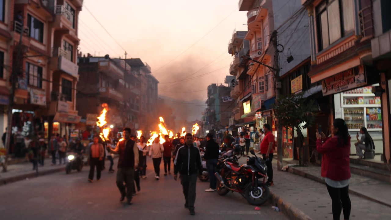 मंगलबार धादिङ जिल्ला सदरमुकाममा अखिल क्रान्तिकारि, वाई.सि.एल. धादिङ र तामाङमुक्ति मोर्चा द्वारा संयुक्त रुपमा मसाल जुलुस निकालेको हो । जुलुस पस्चात कोण सभालाई सम्बोधन गर्दै निलकण्ठ नगर कमिटीका अध्यक्ष अमृत तामाङले सरकारले जनताका हितमा काम गरिरहेका ब्यक्तिलाई बिचौलियाको निर्देशन र आर्थिक लोभमा हटाइएको बताउनु भएको थियो ।