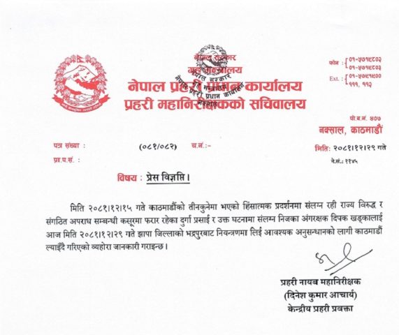 भारतमा समातिएका दुर्गा प्रसाईंलाई प्रहरीले झापाबाट काठमाण्डौ ल्याउँदैछ । यही चैत १५ गते राजावादीले गरेको हिंसात्मक प्रदर्शनका कमाण्डर प्रसाईं भारतमा समातिएपछि प्रहरीले बिहान काँकडभिट्टा नाकाबाट नेपाल ल्याएको थियो ।