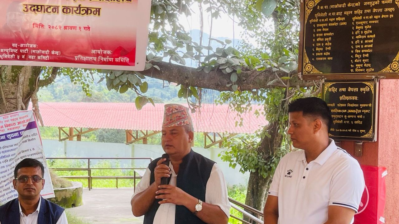 वाग्मती प्रदेशका निवर्तमान मुख्यमन्त्री सालिकराम जमकट्टेलले धादिङको धुनिवेसि नगरपालिका वडा नम्बर ५पुरानो धार्केमा निर्माण गरिएको सहिद तथा बेपत्ता स्मृति प्रतीक्षालयको उद्घाटन गरेका छन् ।
