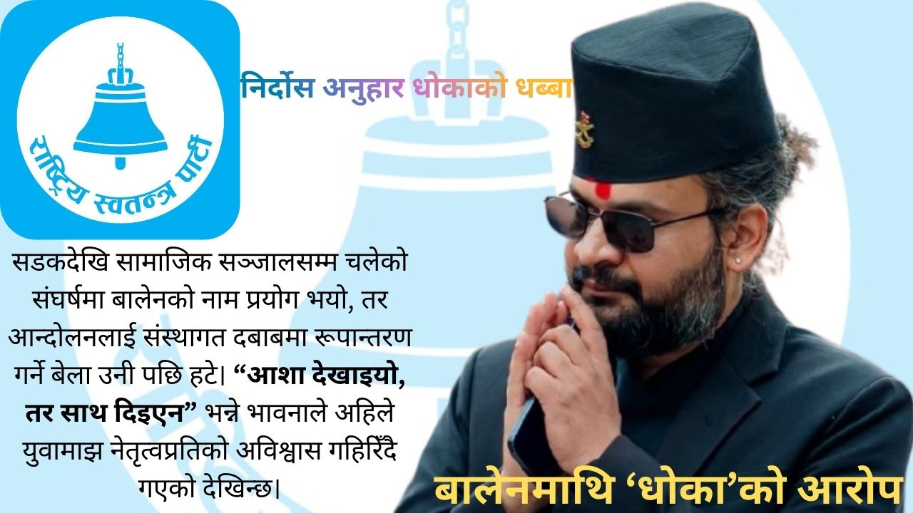 धादिङ १९– माघ, पछिल्लो समय जेनजि आन्दोलनसँग जोडिएका युवाहरूले बालेन्द्र शाह (बालेन) ले आफूहरूलाई धोका दिएको आरोप सार्वजनिक रूपमा लगाउन थालेका छन्। परिवर्तन, प्रतिरोध र प्रणाली सुधारको प्रतीक मानिएका बालेन निर्णायक घडीमा मौन बसेको र आन्दोलनलाई भर्याङ बनाएर आफुलाई प्रधानमन्त्रि बनाउन लागेको भन्दै युवामाझ असन्तुष्टि चर्किँदै गएको हो। जेनजि आन्दोलनका सहभागीहरूका अनुसार सडकदेखि सामाजिक सञ्जालसम्म चलेको संघर्षमा बालेनको नाम प्रयोग भयो, तर आन्दोलनलाई संस्थागत दबाबमा रूपान्तरण गर्ने बेला उनी पछि हटे। “आशा देखाइयो, तर साथ दिइएन” भन्ने भावनाले अहिले युवामाझ नेतृत्वप्रतिको अविश्वास गहिरिँदै गएको देखिन्छ। यही कारण बालेनमाथि ‘धोका’को आरोप…